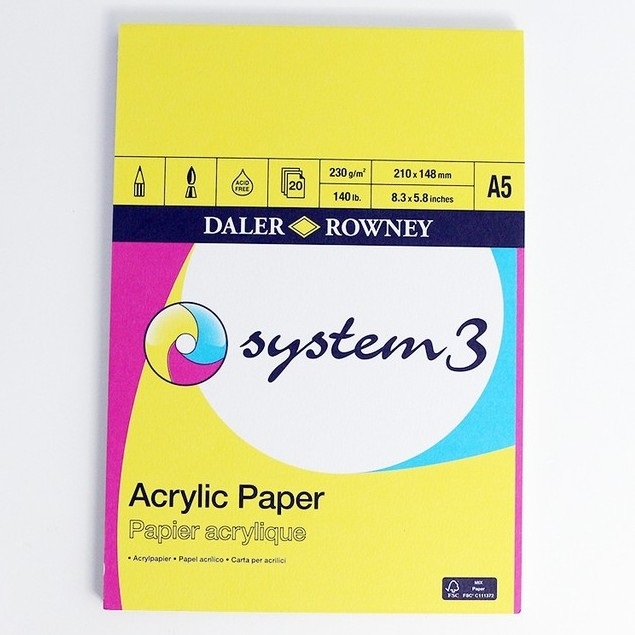 Daler-Rowney System3 Acrylic Paper is a high-quality acrylic surface featuring a texture which recreates the random weave of linen. Ideal for use with all acrylic colours and mediums, the acrylic paper is a perfect surface to both practice and develop techniques as well as for finished works.